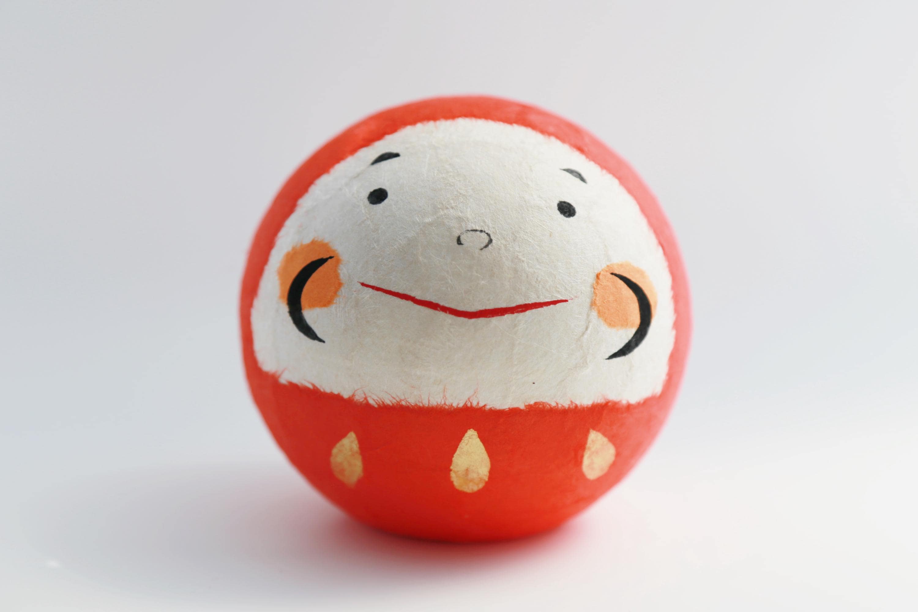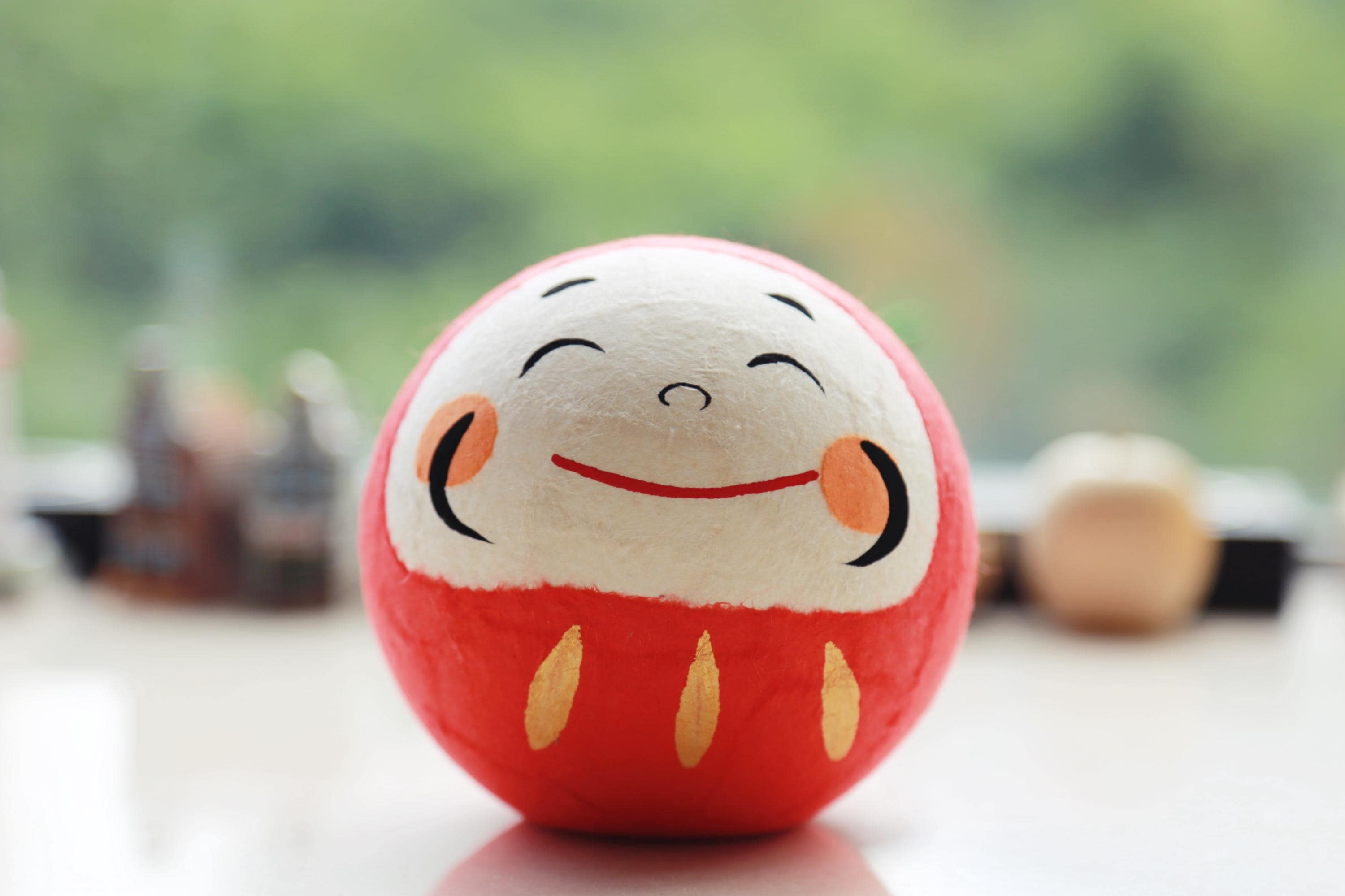 Because the Daruma doll is weighted at the bottom, if you knock it over, it immediately bounces back up. It never stays down.